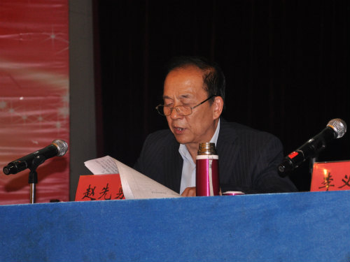 报告会伊始,赵先勇首先就赵蔚芝先生的生平事迹从求学、从教、科研三个方面进行简述。他讲到,赵蔚芝先生幼年家境贫寒,而身为长子又身兼重任,求学之路异常坎坷,而“岁月不居,天道酬勤”,自强不息、致力学习的精神使他以优异的成绩毕业,并取得了可人的学业成果,其中尤以在古典文学方面的造诣为人称赞;谈及从教,赵蔚芝先生早年便立下成为一名人民教师的誓言,毕业后更是坚决践行此志,虽辗转于多所公司任职,但始终以人民教师的人格道德严格要求自己,以传道授业解惑为己任,无论职位高低、待遇好坏、环境顺逆均踏踏实实地教书育人,为国家培养栋梁之才;赵蔚芝先生真正从事科研事业时已年近花甲,其渊博的文化知识加之丰富的教学经验使其科研工作厚积薄发,而在那个特殊的历史时期,文化大革命对其科研成果造成重创,但他从未因此而放弃科研,在平反后继续苦心钻研,重新编排学说著作,多次获得山东省、淄博市社科优秀成果奖。