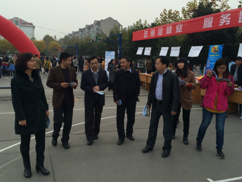 11月11日上午,山东省2014年秋冬季高校毕业生就业集中招聘活动暨伟德国际19462015届毕业生供需见面会于公司第三体育场举行。我党总支书记李义勇,经理李静,党总支副书记卢彦峰,副经理卢连伟、王明新、牛书田,办公室主任辛延龄,各级辅导员及部分班级导师来到招聘会现场,了解相关企业对外语专业人才的招聘情况。
