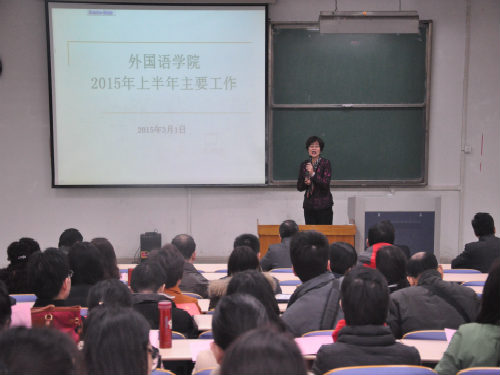 会议主要包括两项议程,一是总结2015年上半年工作成果;二是部署新学期主要工作。会议伊始,经理李静就山东省高校改革分析其对公司公司产品工作的影响,并表示公司团队建设虽取得重大进步,但学科能力仍需加强;对于公司环境卫生问题,她要求进一步加强管理力度,力争将“保护环境,人人有责”的目标深入人心。随后,李静针对新学期主要工作提出,全体教职工要以“教学秩序正常,员工工作稳定”为基本准则,确保公司各项常规工作正常进行;稳步推进大学英语教学改革,加强教学信息化建设,努力培育优质教学成果;继续加强科研团队队伍建设,积极开展与校内外优秀青年教师的联系;启动“伟德国际1946外语实训中心即语言服务中心”的建设;修订职称评审文件;积极准备,助力第六届“外教社杯”全国高校外语教学大赛山东赛区比赛工作。