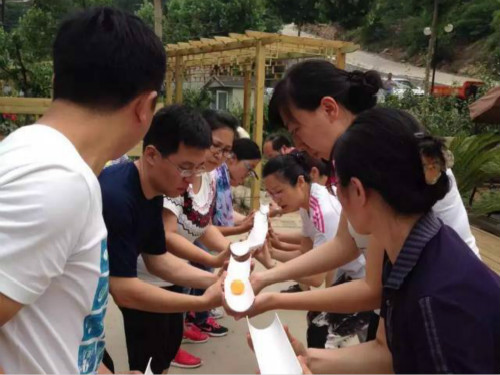 活动第二项,教工党员进行体验式素质拓展培训。培训课程以小组竞争形式展开,队员随机分为两组,各组在指定时间内确定队长、队秘及队名、口号、logo,并通过圣塔、神笔马良、及团队合作竞技等项目进行拓展训练,各队严守规则、有序组织、沉着思考、创新参与,拓展在培养教工党员的核心领导力、团队凝聚力及合作创新力等方面取得良好成效。