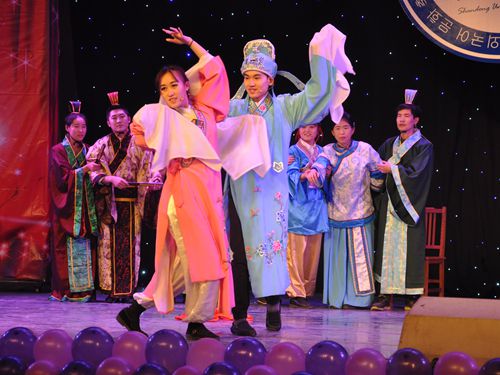 闭幕式上,外语文化节十大赛事颁奖典礼与成果展演汇报穿插进行。公司党委书记都光珍、副书记张宇声、副董事长胡兴禹、淄博市人民政府外事侨务办公室党组副书记、副主任魏向群为第十届外文电影配音大赛、第三届英语朗读大赛、第九届伟德国际1946英语辩论赛、第十届外文舞台剧大赛、第三届“译鸣惊人”翻译大赛等十大赛事的获奖选手颁奖。成果展演中,汉服舞蹈表演《礼仪之邦》以优雅舞姿演绎中国传统文化之美;外文配音《火影忍者》用标准的日语传递打破友情羁绊的勇气;音乐剧《音乐之声》用娴熟的英语再现西方经典;舞台剧《梁山伯与祝英台》剧组以精湛的话剧表演技巧及英语应用能力演绎梁祝相允、双双化蝶的永恒美好;服装秀《穿越时光的灵动》以古今服饰诠释现代与古风之灵动;同时,英语演讲、脱口秀及俄、英、日、韩外文歌曲等尽展外文魅力。