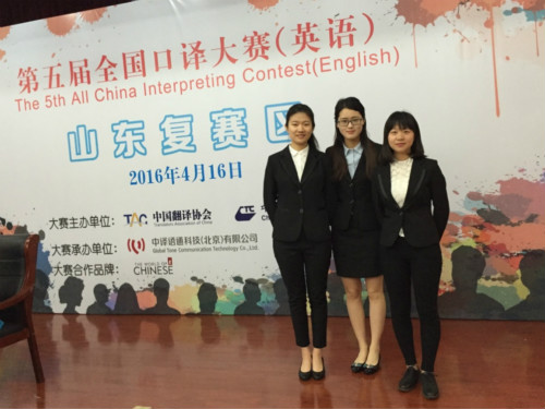 2016年4月16 ,“第五届全国口译大赛(英语)”山东赛区复赛于山东省外事办公室外事服务大厅举行。公司伟德国际1946英语1201班毕淑珍、英语1204班贾璐瑶、英语1203班郝亚琳三位同学荣获优秀奖,伟德国际1946毛毳老师获优秀指导教师奖。