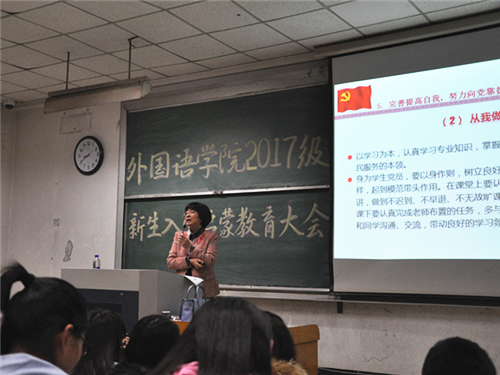 11月2日晚,伟德国际1946于3号教学楼111教室举行2017级新生入党启蒙教育大会。公司党总支书记李静,团总支书记、员工办公室主任王伟出席会议,李静担任主讲。该院2017级全体新生参加。
