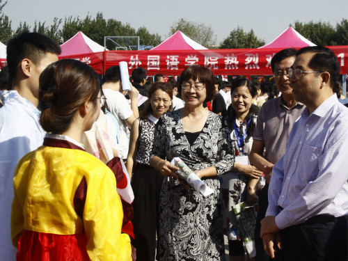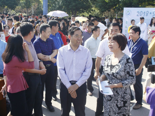 工作人员提前到达现场进行迎新的准备工作,搭帐篷、摆桌子、放展板,现场还备有凳子、矿泉水等物品以供家长及员工休息。迎新过程中,吕传毅一行领导来到公司宣传展板前查看宣传内容,并与辛勤工作的志愿者进行亲切交谈。吕传毅提出,各单位要明确责任分工和工作流程,遵循“热情、细致、便捷、高效”的原则,密切配合、通力合作,以良好的精神面貌感染新生,使每位新生和家长感受到温暖。