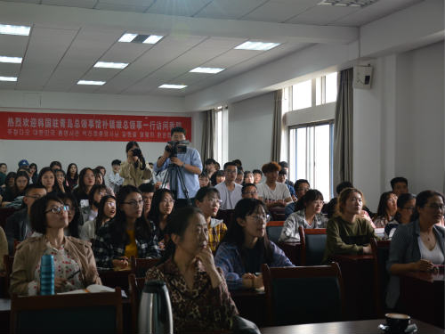 讲座在轻松、愉悦的气氛中结束。在之后的互动环节中,朴镇雄与同学们就韩语学习方法和韩国文化进行深度交流,同学们对韩语学习表现出极大的热情,朴镇雄表示,中韩两国源远流长的文化交流历史和天然的地缘亲近拉近了两国之间的距离,总领事馆将积极推动中韩两国高校的合作交流,促进中韩两国关系发展,希望同学们多多开阔视野,加强韩语学习,能够成为优秀的语言人才。