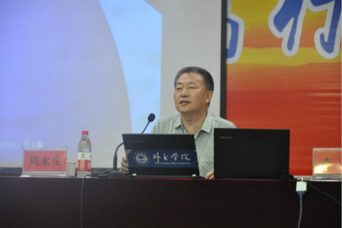 周永生教授从中美政治关系、中美经济关系、2018年的贸易战、2019年的贸易战和贸易战对中国的影响五个方面展开讲座内容,为到场师生讲述了中美贸易争端的起源和概况,对中美贸易战进行了回顾,同时就几个争端中的核心问题和起因疑点进行事实揭露和分析,帮助大家进一步剖析和了解中美贸易战的本质。周永生教授详细阐述分析了当前中美经贸关系中的焦点问题以及中美双方各自的立场和看法,展望了中美经贸关系今后的发展趋势和走向,指出在新的国际形势下,中国将进一步扩大对外开放,在完善世界多边贸易体制等方面积极进行探索与实践。
