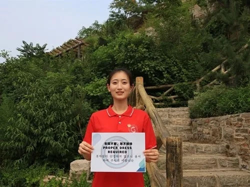 同时,实践队员在调研过程中参观沂蒙山地质博物馆岱崮园区博物馆,结合语言专业优势为当地旅游景区制作中、英、韩三语指示牌与警示牌,在为各国游客提供便利的同时也有助于规范其行为。