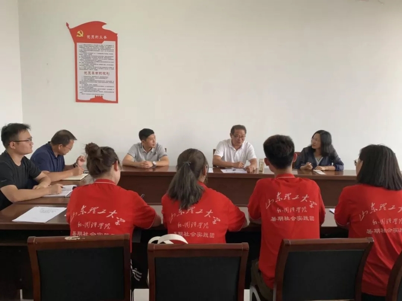 图为山东省派蒙阴县乡村振兴服务队队长、省教育厅(省委教育工委)二级巡视员刘欣堂一行出席公司“蒲公英”社会实践团工作汇报会并指导工作