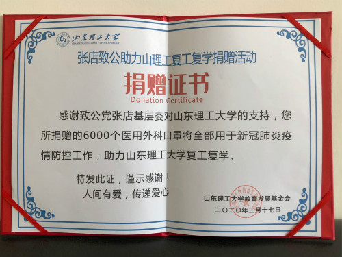 感谢致公党淄博市委张店区基层委对公司的慷慨捐赠