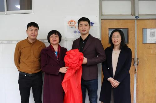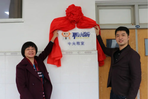 仪式伊始,华图教育联席总裁李曼卿和公司党总支书记李静共同为职小新“双创中央教室”揭牌。