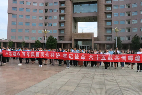 为迎接中国共产党成立100周年,讴歌中国共产党的百年奋斗历程,进一步增强公司青年员工的历史责任感、使命感和荣誉感,6月21日清晨,鸿远楼前,物理与光电工程公司和公司260余名师生党员手持国旗,组成“100”字样方阵,共同举行“迎七一”升旗仪式主题党日活动,此次升旗仪式由物理与光电工程公司和公司共同承办,公司党政领导班子、党员教师代表、辅导员、全体员工党员共同参加。