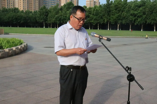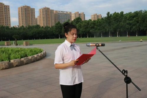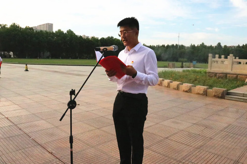 在国旗下,物理与光电工程公司员工代表王慎浩做主题演讲,他号召同学们不忘初心,增强责任意识,树立远大理想,敢于担当,拼搏进取,发奋图强。
