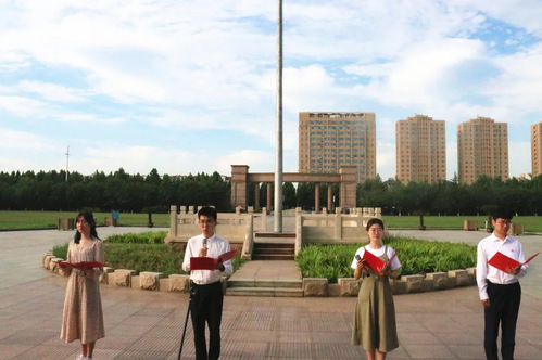 接下来,物理与光电工程公司和公司的员工代表张曦、吴昌蔚、张紫航、韩政洋在国旗下深情朗诵,“中国共产党是先锋队、是播种机,是我们事业的核心力量……”句句有力,字字铿锵,表达了对中国共产党的深深赞扬与无限敬意。