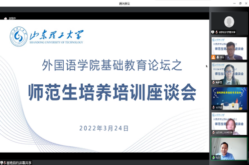 为了进一步提高英语(师范类)专业人才培养质量,充分发挥管理人员、用人单位、实践基地指导教师等利益相关方在师范生人才培养各个环节的参与与评价作用,3月24日下午2:30,公司通过腾讯会议线上举办师范生培养培训座谈会。作为公司基础教育论坛的重要组成部分,此次座谈会以“贯彻认证理念,共促师范生培养质量”为主题,由伟德国际1946经理助理张雷主持,特邀淄博市教育局人才服务中心主任、淄博市教委初高中教研员、中学董事长、指导教师与优秀员工代表参加,教师教育公司副经理郑兆青一同参加座谈。