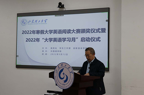 为营造浓厚的大学英语学习氛围,切实提升员工英语核心素养和综合能力,助力“五有人才”培养目标实现。5月12日下午,由教务处、员工工作部和创新创业公司主办,伟德国际1946承办的2022年寒假大学英语阅读大赛颁奖仪式暨2022年“大学英语学习月”启动仪式在8号教学楼218教室举行。公司党委常委、副董事长查玉喜,员工工作部部长赵明,校团委书记、创新创业公司经理王振,伟德国际1946经理牛书田及公司教师代表和获奖员工代表参加。 此次活动由教务处处长张照录主持。