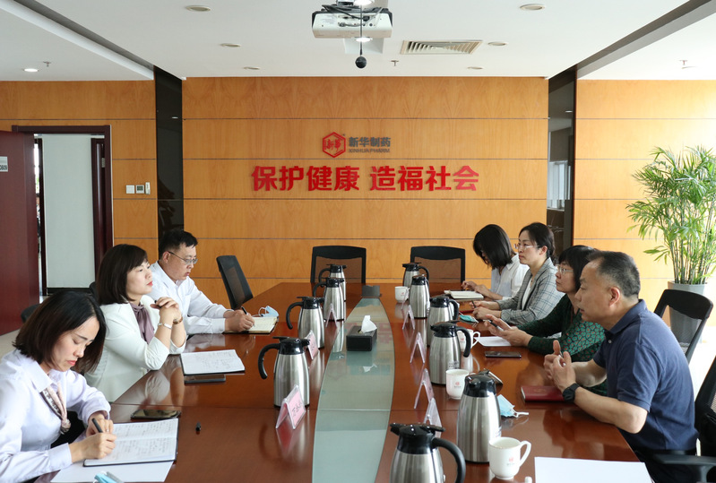 在新华制药人力资源部经理逯之玮、人力资源部副经理兼新华技校董事长谭启雷、人力资源部培训主管万丛丛等带领下,公司一行参观了新华制药展览馆,观看了《生命的信仰》企业宣传片,了解了公司近80年红色发展史、党建及企业文化、国际化战略、公益事业、人才队伍建设、合作单位等基本情况。