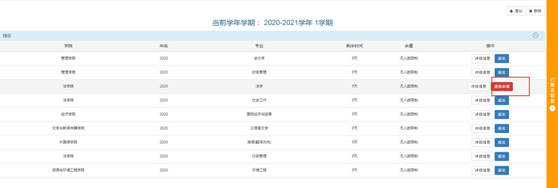 4、已通过的辅修报名,点击退报申请