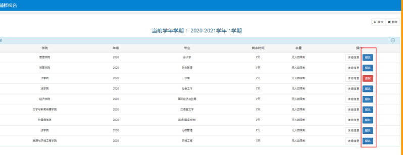1) 员工登录教学综合信息服务平台-报名申请-辅修报名(具体流程后附)中选择要填报的专业,只能选择一个辅修专业。
