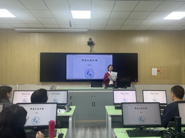 英语(师范类)专业负责人、英语教育系主任彭静领学了师范专业认证手册,从政策理念、培养方案、课程体系、教学大纲等多个方面进行了详细的解读。
