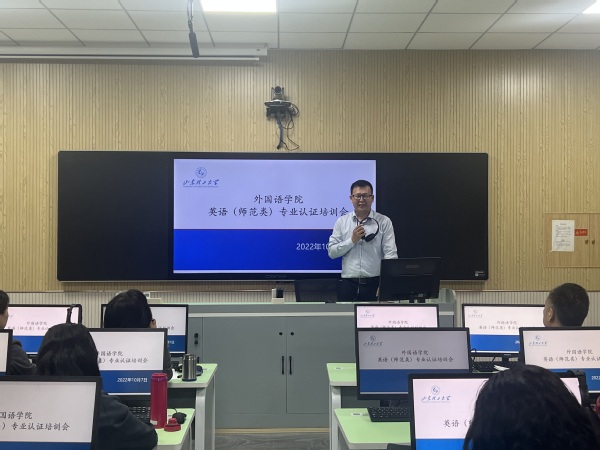 会上,经理牛书田向大家说明了此次会议的目的,进一步强调了师范专业认证工作的意义和内涵,他要求全体教师要提高政治站位,上下一心,以此次专业认证为契机,贯彻落实师范专业认证的理念,切实提高教学质量,切实提升英语师范生培养质量。
