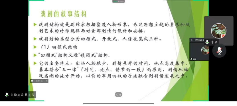 随后,李丽侧重从戏剧各要素、戏剧叙事结构、课本剧创编方法三个方面进行详细讲解。首先,她指出员工应当充分了解戏剧及其各要素,把握戏剧冲突,碰撞戏剧人物性格,表达戏剧情感力量。随后,她向员工介绍课本剧创编要求,课本剧剧本应做到结构完整、兼顾原文本与创新性统一,剧情逐步推进、符合戏剧发展规律,同时体现戏剧作品的教育性。最后,她鼓励员工进行小组合作、全员参与,发展语言技能,提升专业能力;通过课本剧的方式完成正能量价值引领,发挥隐形课程作用,体现英语活动观。