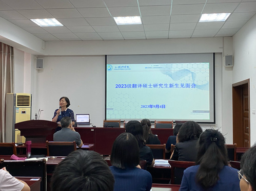 9月4日下午16:00,2023级翻译硕士研究生新生见面会在伟德国际19468号教学楼418教室举行。伟德国际1946党委书记李静、经理牛书田、党委副书记宋伟、副经理张燕、副经理张雷、校学术委员王晓华教授、翻硕办公室主任樊丽霞、2023级硕士生导师和2023级翻译硕士参加此次见面会。会议采取线上线下相结合的方式进行,副经理张燕老师主持本次见面会。