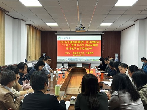 会上,孔蕾教授以“《习近平谈治国理政》多语种版本‘三进’背景下的信息技术赋能外语教学改革经验分享”为主题,从一流课程标准及其对课程建设的要求、《习近平谈治国理政》英文版“三进”工作、外语教育面临的挑战、教学改革要解决的问题等方面阐述信息技术支持和推动教育改革的重要意义。