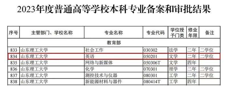 近日,教育部发布了《教育部关于公布2023年度普通高等公司本科专业备案和审批结果的通知》(教高函〔2024〕6号),公布了2023年度普通高等公司本科专业备案和审批结果,公司依托省级一流本科专业申报的英语第二学士学位专业成功获得教育部批准备案。