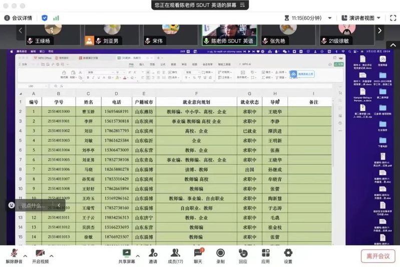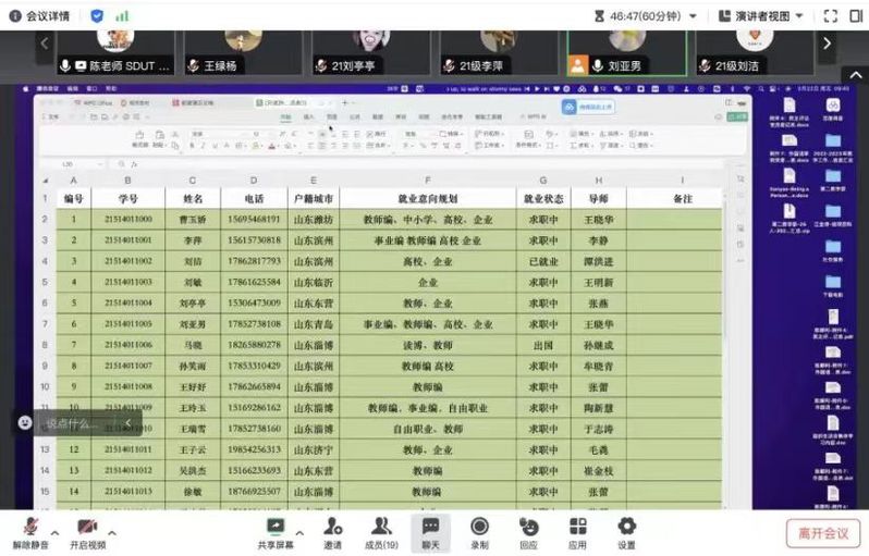 研究生毕业生代表刘亚男等依次汇报目前论文情况以及就业情况。论文方面,研究生毕业生整体情况稳定,已经进入论文修改阶段,在导师的指导下稳步推进,进度良好。就业方面,大部分研究生毕业生在教师编、事业编、人才引进、国企民企等方向展现出较强的求职意愿,部分员工已完成企业劳动合同签订,大部分同学在不断投递简历,积极准备面试中。