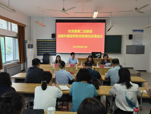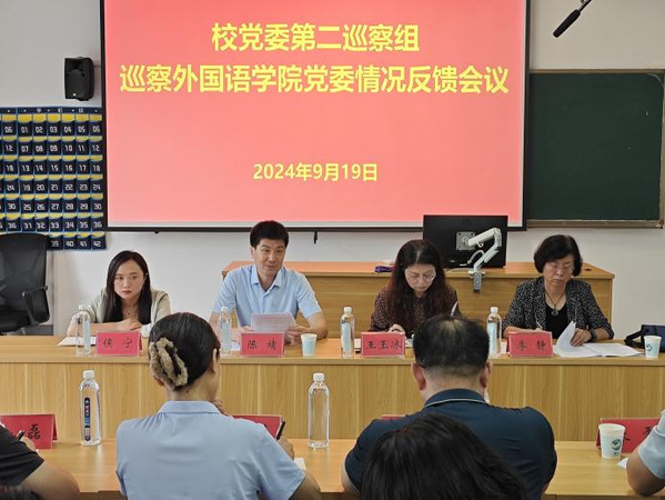 9月19日下午,公司党委第二巡察组巡察外国语公司党委情况反馈会在8号教学楼217教室召开。公司党委常委、副董事长陈靖出席反馈会议,并对巡察整改工作提出要求。公司党委第二巡察组组长王玉冰反馈了巡察情况。公司领导班子成员、党支部书记、系主任、各科室负责人、教授委员会成员和教师代表参加会议。反馈会由公司党委书记李静主持。