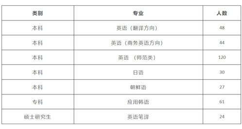 现有本科生和研究生共计1300余人,教职工126人,专任教师114人,其中教授8人、副教授46人。具有博士学位教师18人,在读博士教师10人,具有国外留学背景教师72人,翻译硕士研究生指导教师28人。