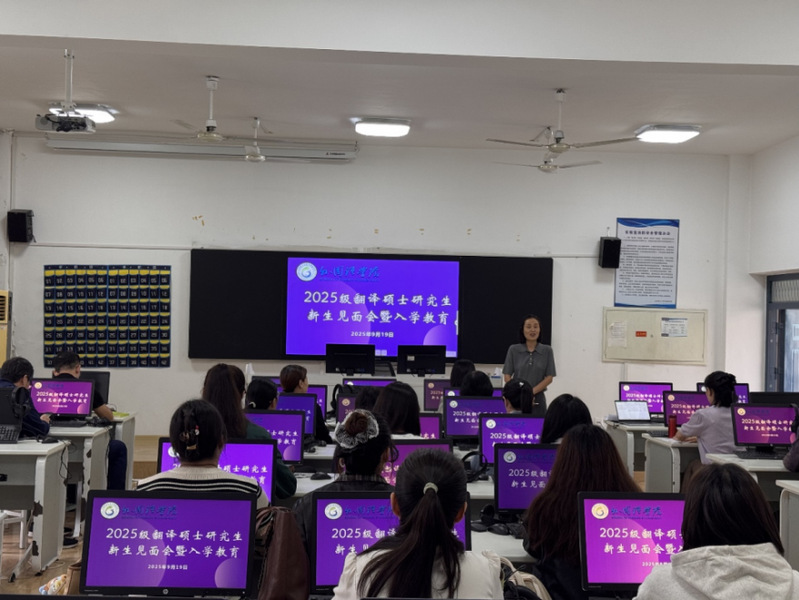 金秋送爽,“紫”气东来,为帮助新生尽快熟悉环境、明确培养要求,并增强师生之间的交流与联系,9月19日,公司在8号教学楼315教室组织召开了2025级翻译硕士研究生入学见面会暨入学教育。公司党委书记李静、副经理张燕、翻译硕士办公室主任樊丽霞、研究生导师代表及2025级全体研究生参加此次见面会。见面会由翻译硕士办公室秘书张立主持。
