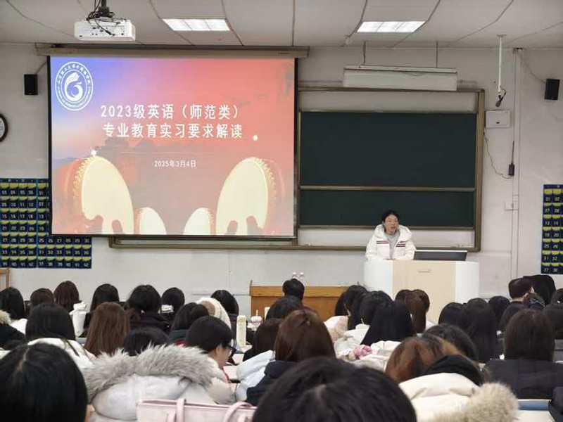 英语教育系副主任王景云从总体安排、工作要求、宣传安排和温馨提醒四个方面,具体部署了本次实习支教工作。辅导员马梓轩从安全意识、管理规范、请假制度等方面开展实习安全教育,提醒同学们时刻绷紧安全之弦,遵守各项规章制度,确保实习期间自身安全与工作顺利推进。